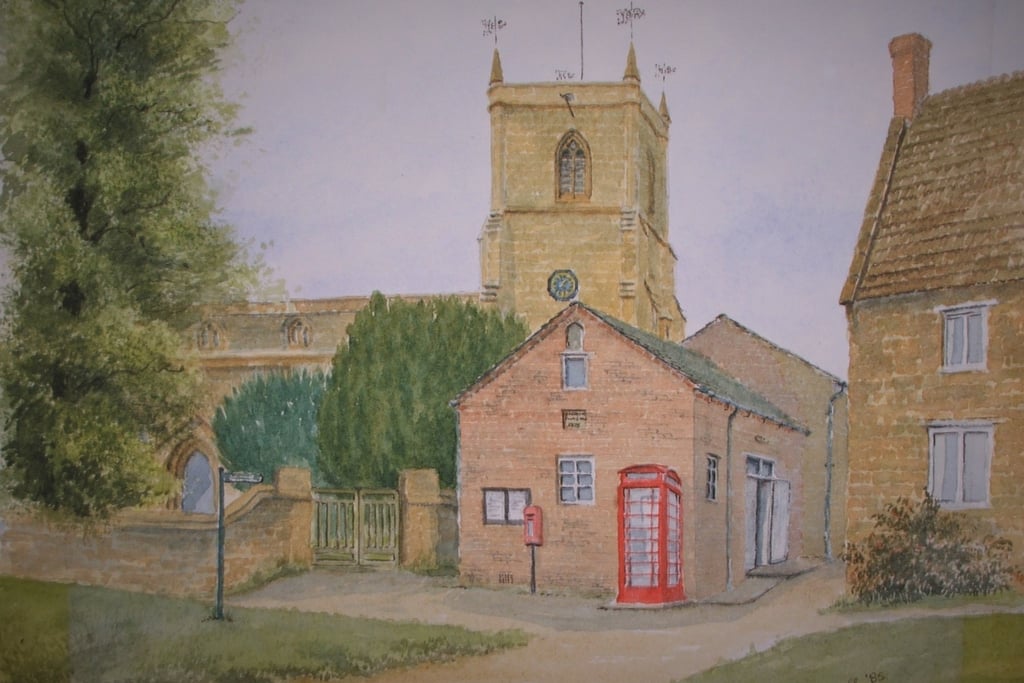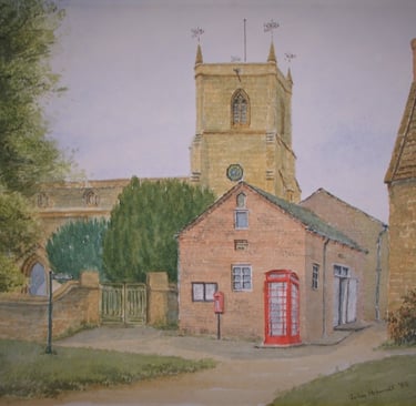 Village Hall picture from artwork by John Ashwell presented to Everdon Village Hall in 1985